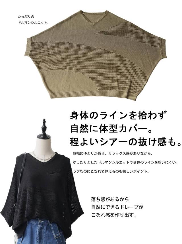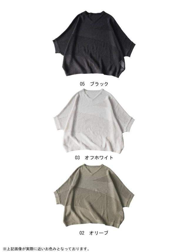 メッシュ ニット レディース ドルマン Vネック 半袖 送料無料・メール便不可 春新作