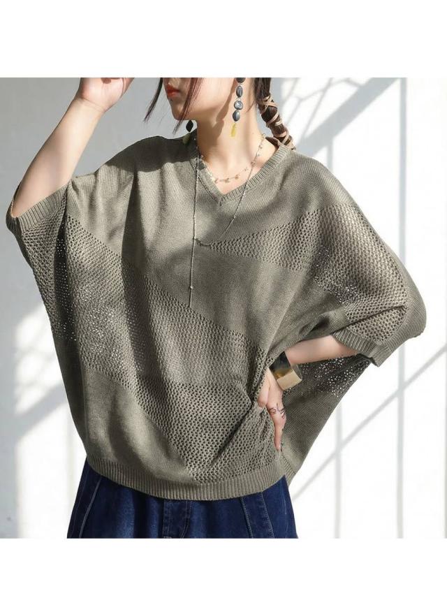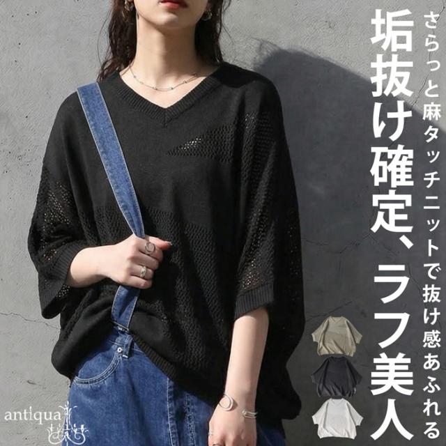 pn-00606 トップス セーター 麻タッチ サマーニット ゆったり 体型カバー 透け感 ルーズ シルエット 上品 きれいめ カジュアル 軽やか リラックス ワイド プラスサイズ 大きいサイズ