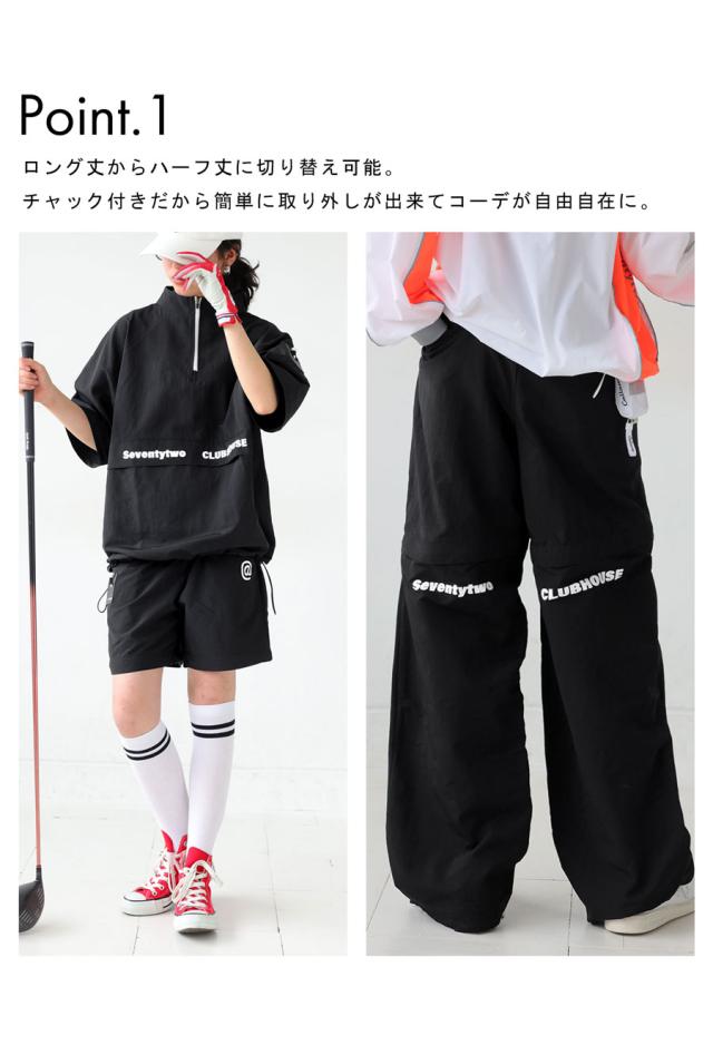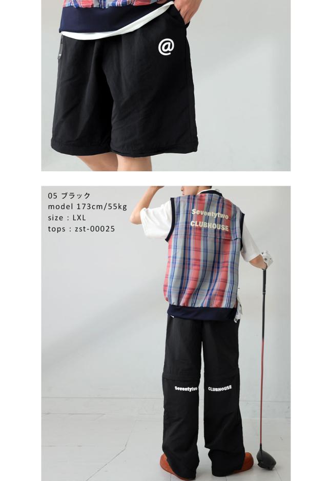 zst-00137z ボトムス 長ズボン ハーフパンツ 2WAY セットアップ 取り外し可 ティーホルダー Dカン ポケット付き ゆったり サイズ展開 普段着 体型カバー 着痩せ 大きめ ユニセックス