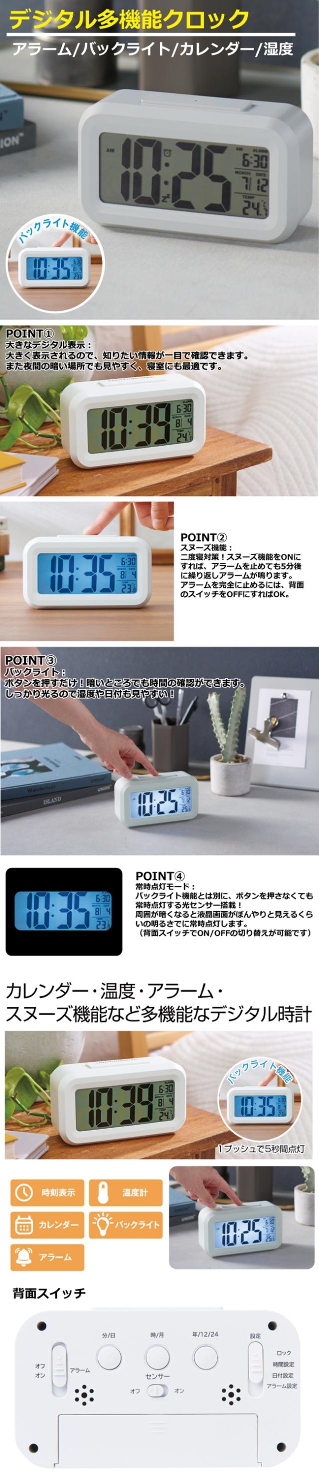 目覚まし時計 多機能 デジタル シンプル スヌーズ 日付 こども おしゃれ 子供 子ども バックライト 置き時計 見やすい カレンダー 温度計 アラーム 卓上 LED表示 光る 12時間 24時間 送料無料 ポイント消化