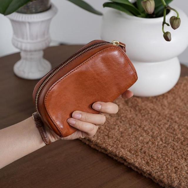 メイク収納バッグ2025新作レトロPU手持ち携帯ファスナー小銭入れ女性シンプルファッション小物ポーチ化粧ポーチ