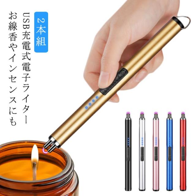 | 2本組 USB充電式電子ライター お線香やインセンスにも キャンプや焚き火、BBQの着火用として 風の影響を受けないプラズマ着火式なのでアウトドアや花火の際に大活躍! | |