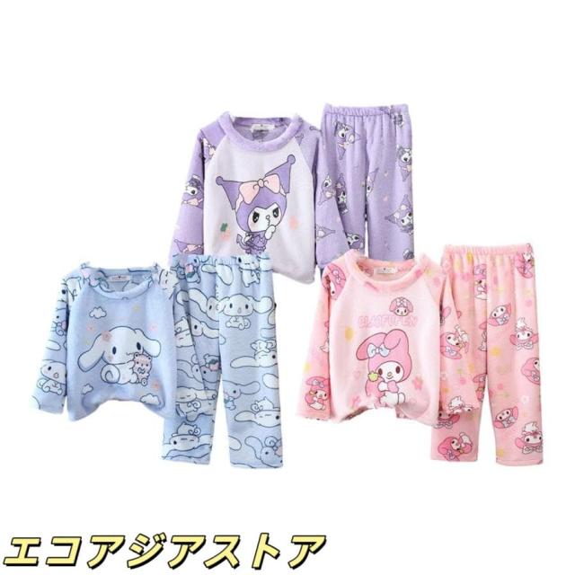 パジャマ 女の子 冬 フランネル生地 クロミ シナモンロール マイメロ 部屋着 ルームウェア 秋冬 上下セット もこもこ可愛い キャラクター ガールズ キッズ