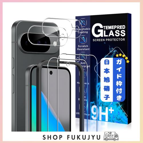 ◆商品名:JCJCLYの【2枚液晶保護+2枚レンズ保護+ガイド枠】二次強化ガラス Google Pixel 10 ガラスフィルム カメラフィルム カバー 保護フィルム G