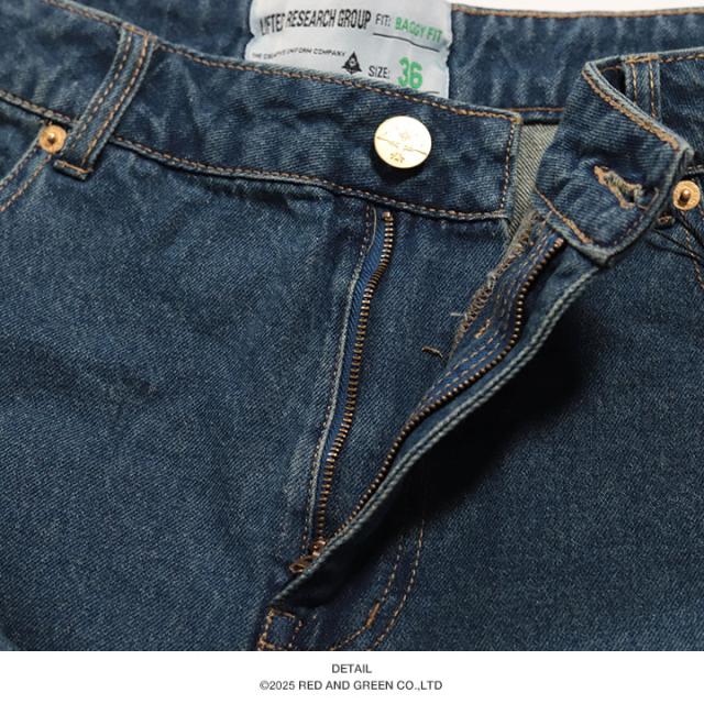 ヴィンテージライクなウォッシュド加工を施した、シンプルなデザインの定番バギーデニム。