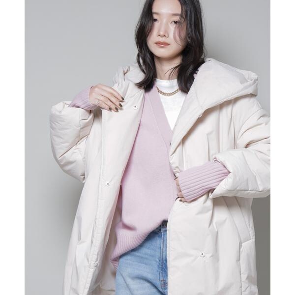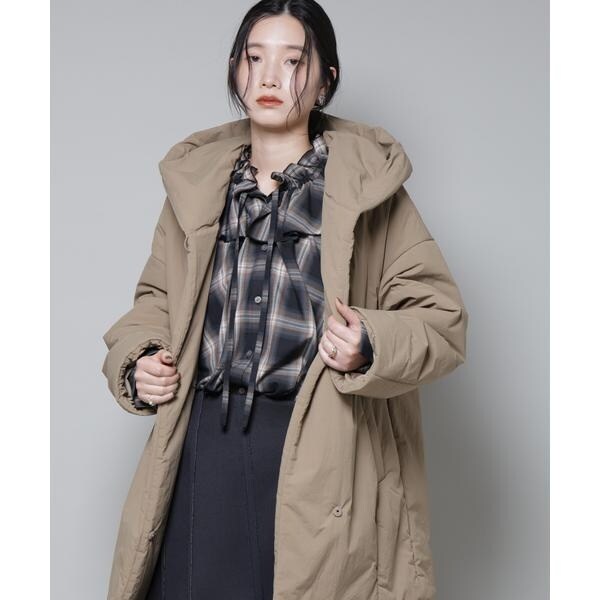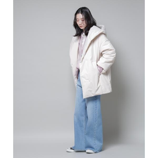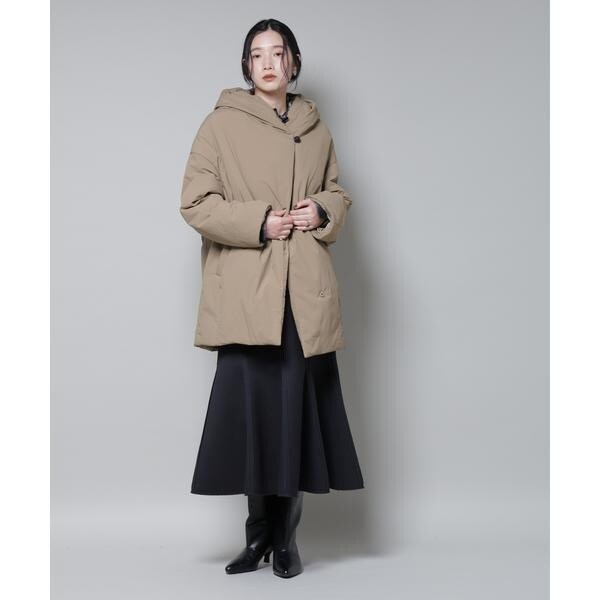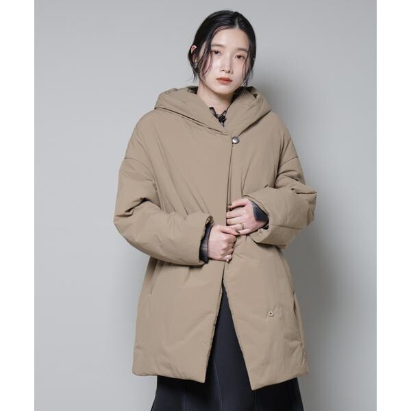 軽くて暖かい機能中綿「ETHERMALOFT(R)AEROGEL」を使用したアウターシリーズ。防寒性とファッション性を兼ね備えた着心地で寒い冬でも快適に過ごせるアイテム。コロンとした丸みのあるエッグフォルムが女性らしい雰囲気のある一着です。