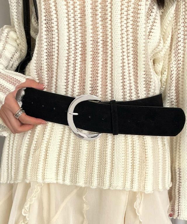 ウエストラインを引き締める、存在感のあるワイドベルト。