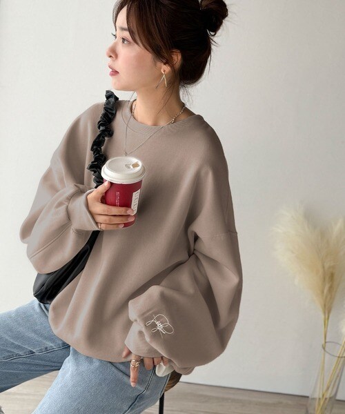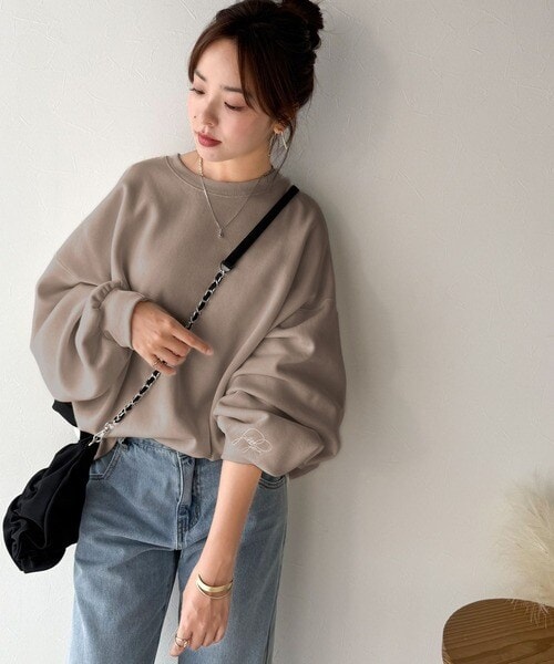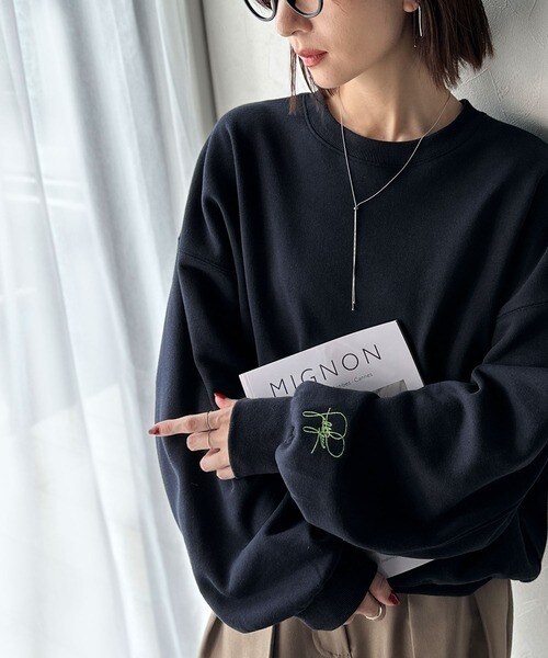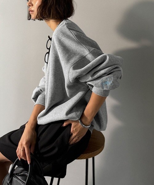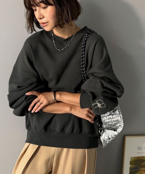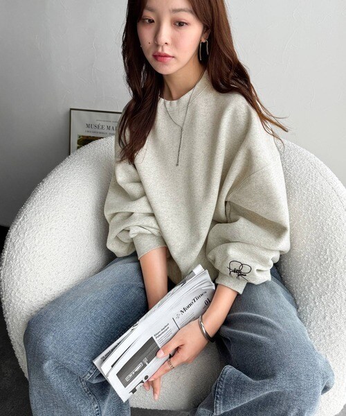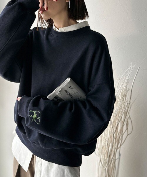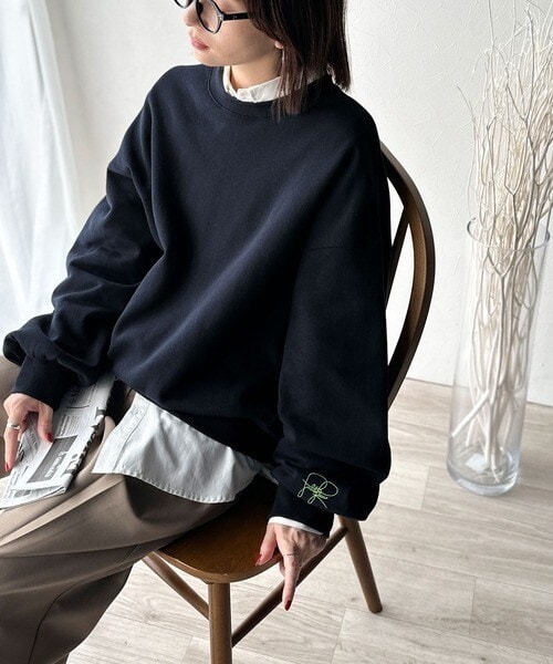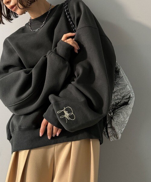 【2025AW新作】袖先のさりげない刺繍がアクセント。サインロゴ刺繍裏起毛スウェット