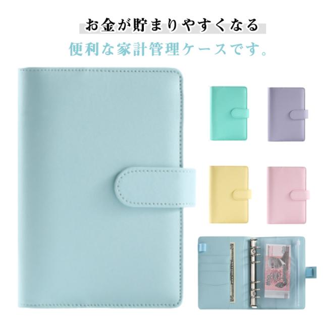 家計 管理 パスポートカバー かわいい ファイル やりくり上手 リフィル カード入れ ケース 5枚ファスナーポーチ サイドポケット 家計管理 大容量 6穴 封筒 お金管理 A6サイズ グッズ バインダー 家計 クリアポケット 袋分け 家計簿 月謝 食費 生活費