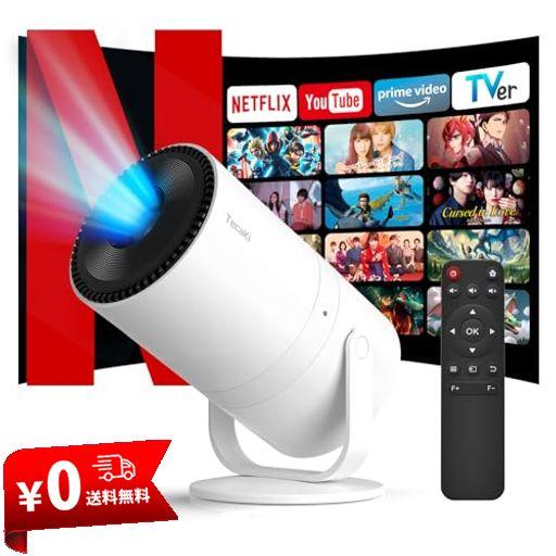 TECAKI プロジエクター 家庭用【ANDROID TV搭載・電動フォーカス・自動台形・270°回転】 小型 1080P 天井投影 静音 4K対応 25000LM ホームプロジェクター BLUETOOTH5.4 HIFIスピーカー内蔵 WIFI6