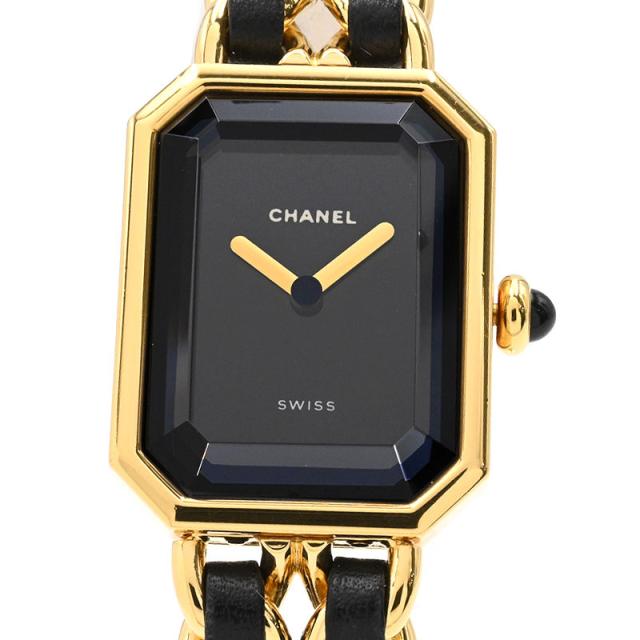 [3年保証] シャネル レディース プルミエール M H0001 GP レザー Mサイズ ブラック 黒文字盤 四角形 八角形 クオーツ 腕時計 中古 送料無料
