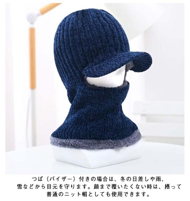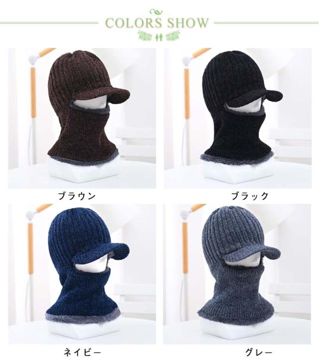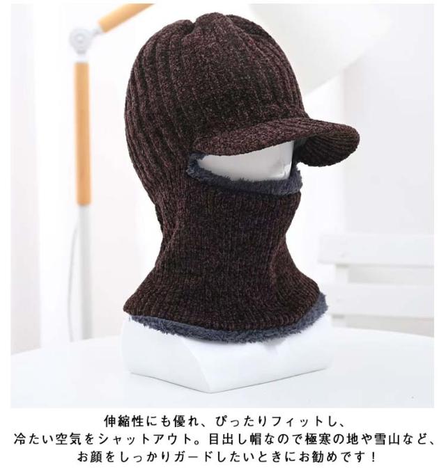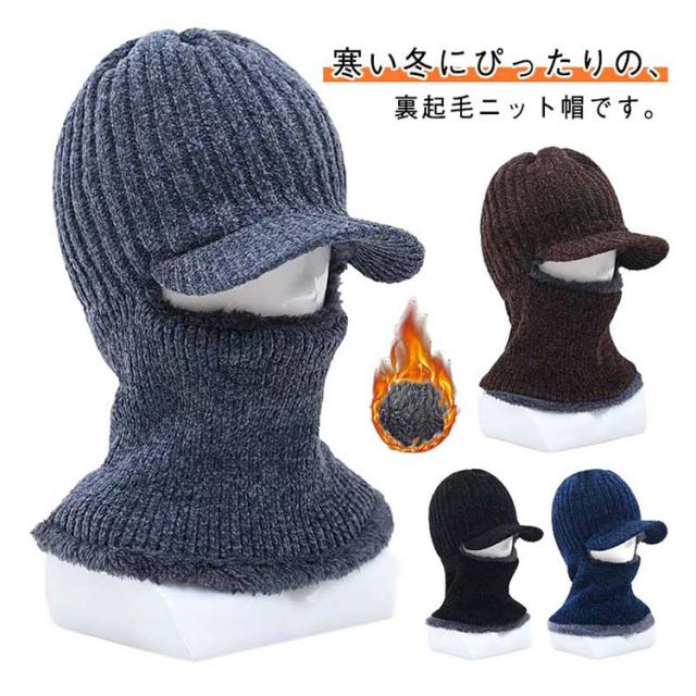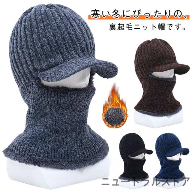 ニット 目出し帽 目だし帽 ネックウォーマー フェイスカバー 帽子 裏ボア 帽子 つば付き 冬用 メンズ あったか 冬用 ツバ付ニット ニット帽 一体型 目出し帽 あったか帽子 耳 みみあて 耳あて バイク おしゃれ 防寒 厚手 目出し帽 自転車