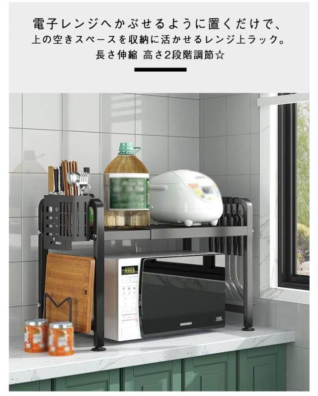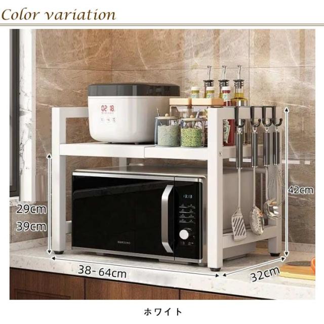 レンジ上ラック 伸縮 長さ38-64cm レンジ棚 1段 キッチン収納 レンジ上 ラック キッチンラック レンジ台 大型レンジ対応 電子レンジ台 トースター カウンター上 収納 卓上 棚 調味料ラック シンプル おしゃれ 北欧 キッチン用品 伸縮レンジラック