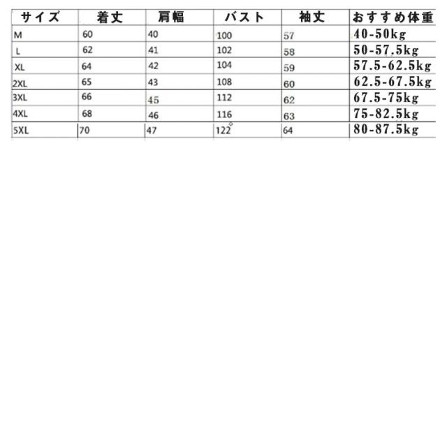 | サイズ | M L XL 2XL 3XL 4XL 5XL |