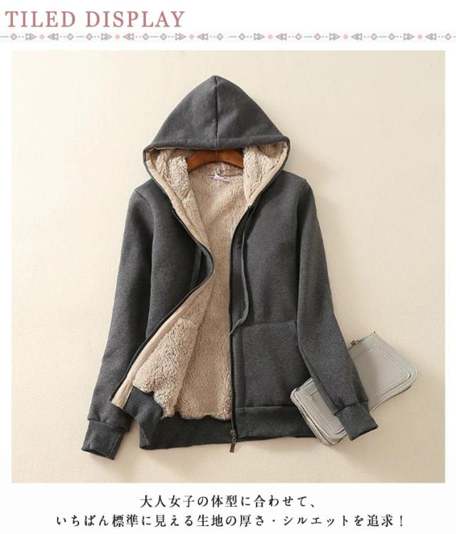 | 大人カジュアルのおしゃれにぴったりのフード付きパーカー。 裏地部分がふわふわとした厚手ボア素材で極上の肌触りです。 大人女子の体型に合わせて、いちばん標準に見える生地の厚さ・シルエットを追求! カジュアルなのに暖かさも取り入れた優秀な一着です。 厚手の素材なので温かくて秋冬コーデに大活躍してくれる! デニムパンツやスカートなどのボトムスと合わせやすく、長時間使える定番アウター! | |