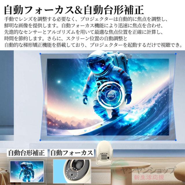 プロジェクター 小型 家庭用 天井投影 5G 1080P 4K対応 高画質 26000LM 自動フォーカス 自動台形補正 高輝度 スマホ 高画質 wifi6 Bluetooth ホームシアター 壁