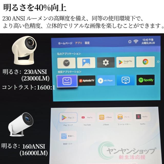プロジェクターにはAndroid TVが内蔵されており、Wi-Fiに接続すれば、インストールされたアプリを介してお気に入りの映画やテレビ番組を視聴することができます。8,000以上のアプリで50万本以上の映画やテレビエピソードをAndroid TV プロジェクターで楽しむことができ、Prime Video、YouTube、Netflixなどの様々な映画やビデオを大画面で楽しむことができます。