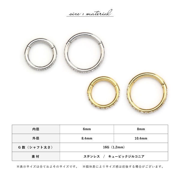 セグメント リング つけっぱなし ステンレス サージカルステンレス 医療用ステンレス 316L 金属アレルギー アレルギーフリー ボディピアス 16G ラウンド 輪っか 輪 石付き キュービックジルコニア ワンタッチ キャッチレス ロック セプタム 軟骨 鼻ピアス 鼻ピ ピアス