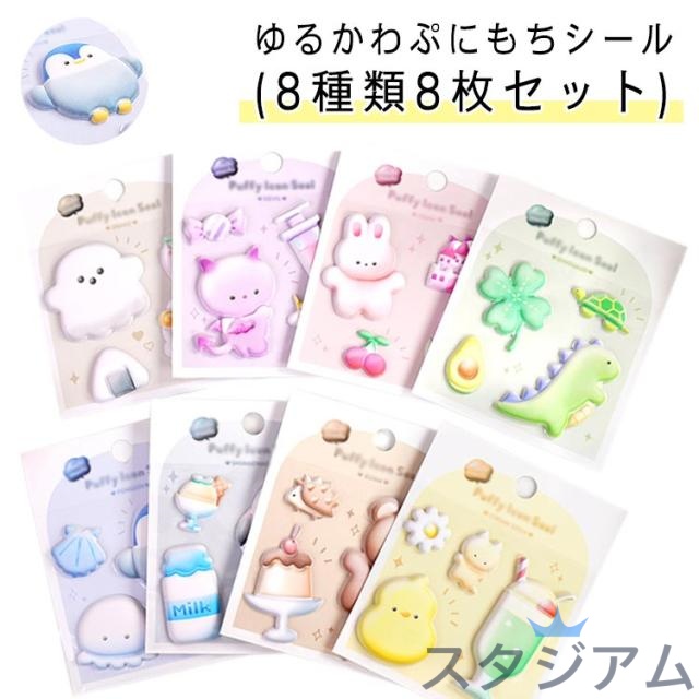 | ゆるかわぷにもちシール(8種類8枚セット) ゆるかわアニマルのイラストが可愛くもちもちなシール? どうぶつのデザインがとっても可愛くて大きめのシールなのでインパクト大! さわるともちっとしててお子様にも大人気! ノートや手帳をデコレーションしたり、友だちとのシール交換でお気に入りを見せ合ったり、楽しみ方はいろいろ。 集めるだけでもワクワクが止まりません! | |