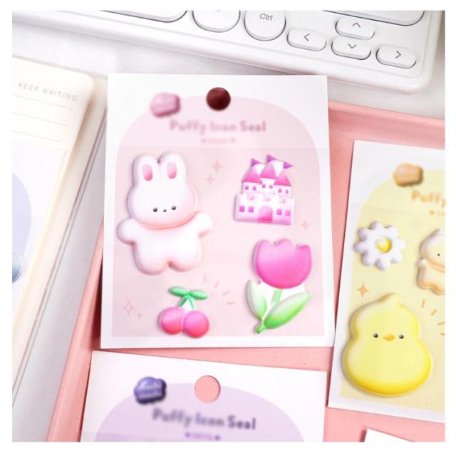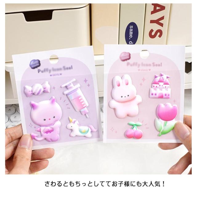 ぷにぷに うさぎ 3D シール ぷちぷに もちもち アニマル キッズ くま ぶっくり 可愛い 女の子 シール かわいい 柔らかい 8枚セット 立体 8枚セット デコレーション 子供向け 動物 幼児 小学生 ギフト プレゼント かわいい おしゃれ iPhoneケース ぷくぷく