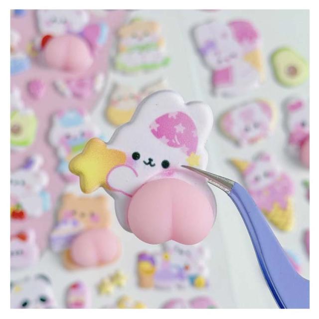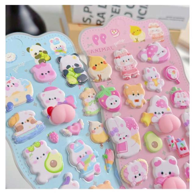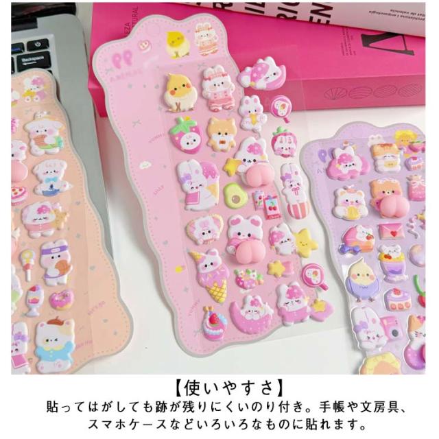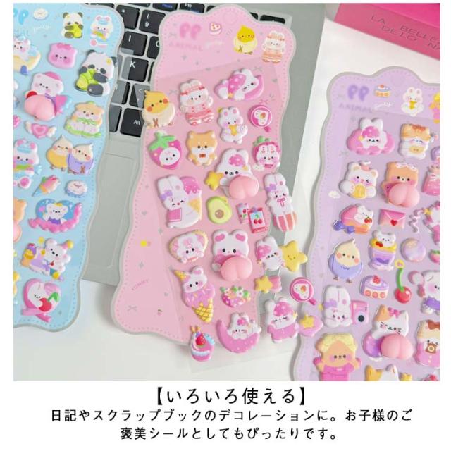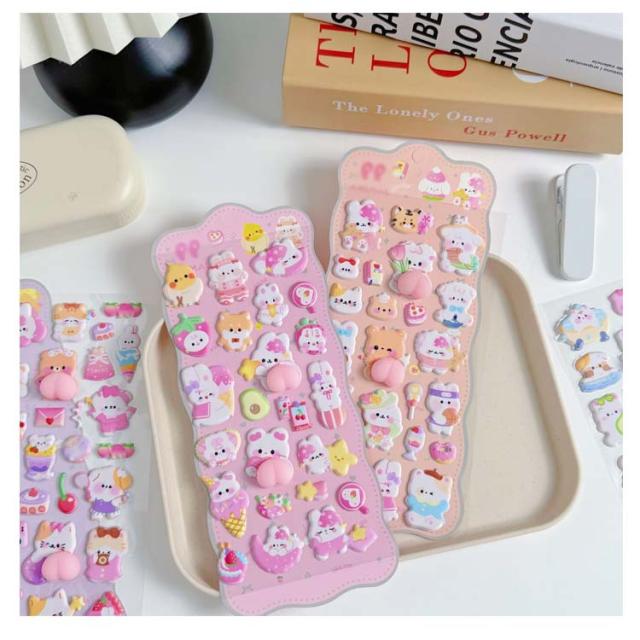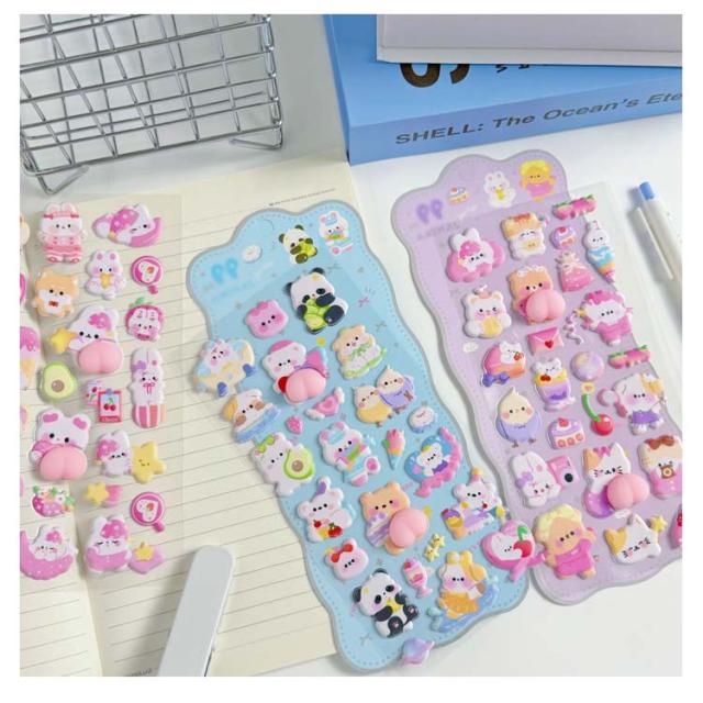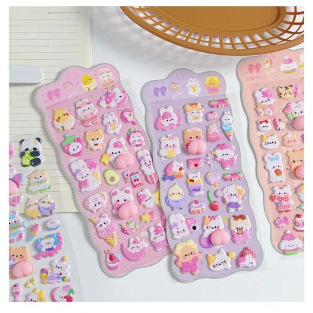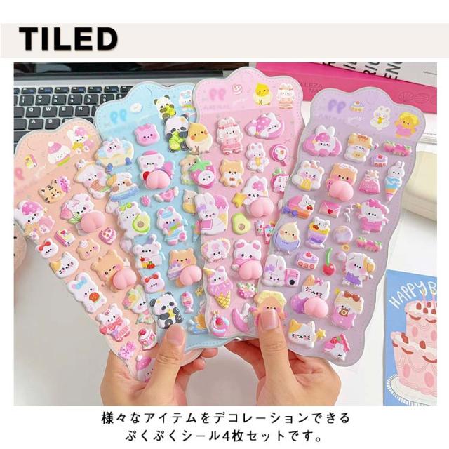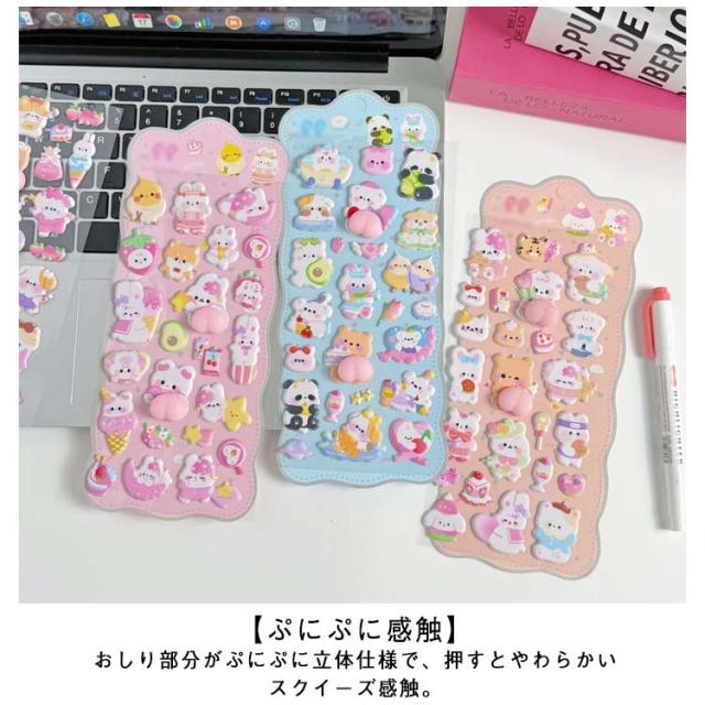 おしりぷにぷに ステッカー 日記帳用 可愛い ぷくぷくシール 3Dシール 日系ごほうびシール ご褒美シール 立体シール 飾り DIY用 4枚セット 手帳用 デコレーション デコシール スマホケース飾り 貼り付け可能 手帳