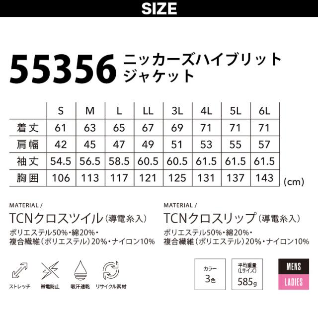 TSデザイン 秋冬 ニッカーズハイブリッドジャケット 55356 大きいサイズ 5L 6L ポリエステル 綿 耐摩耗性 帯電防止 ストレッチ 静電気ケア 導電糸入り ワーク ユニフォーム 作業服 作業着