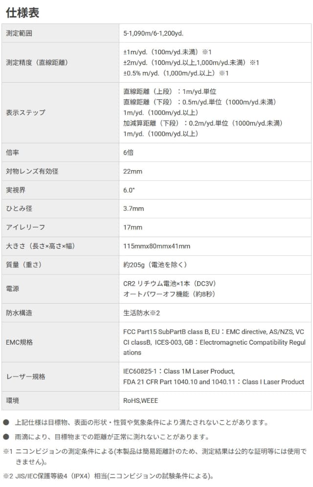 ※雨滴により、目標物までの距離が正常に測れないことがあります。