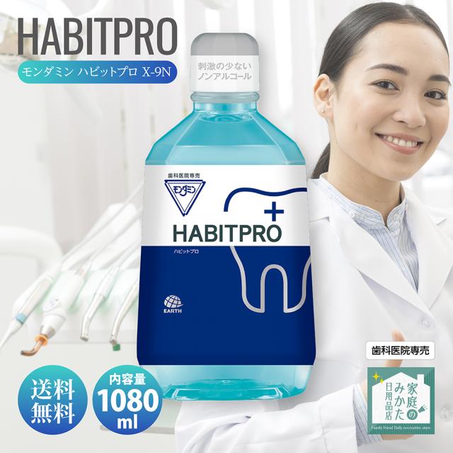 歯科医推奨 モンダミン ハビットプロ 1080ml 1本 HABITPRO 洗口液 マウスウォッシュ 子供 ノンアルコール 天然ミント アース製薬株式会社 医薬部外品 薬用 洗口液 X-9N 歯肉炎予防 出血予防 歯垢付着予防 口臭予防 口中浄化・爽快