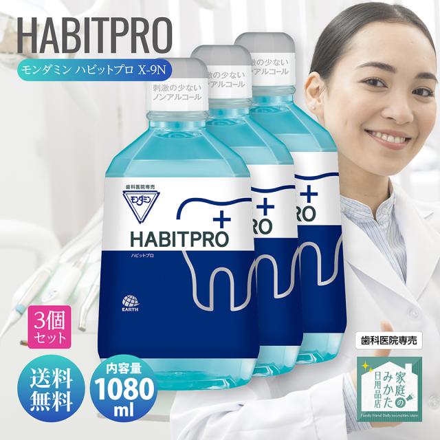 歯科医推奨 モンダミン ハビットプロ 1080ml 3本 HABITPRO 洗口液 マウスウォッシュ 子供 ノンアルコール 天然ミント アース製薬株式会社 医薬部外品 薬用 洗口液 X-9N 歯肉炎予防 出血予防 歯垢付着予防 口臭予防 口中浄化・爽快