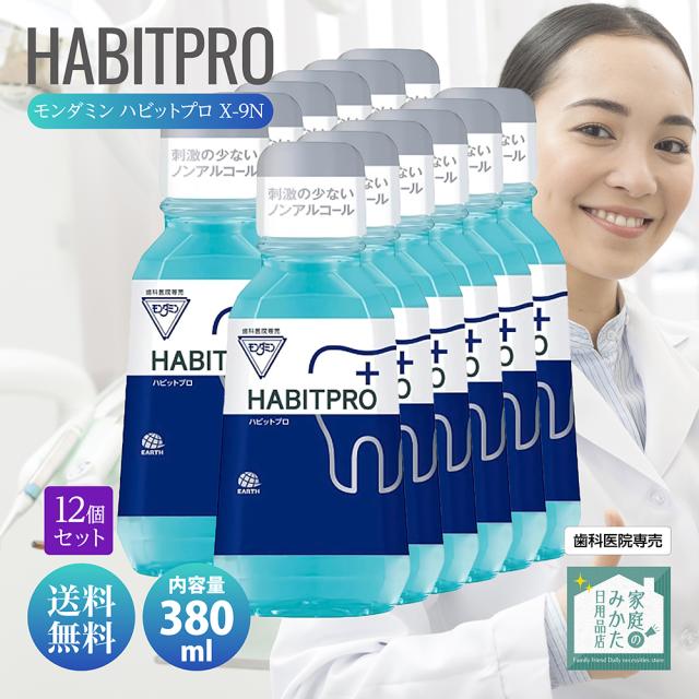 歯科医推奨 モンダミン ハビットプロ 380ml 12本 HABITPRO 洗口液 マウスウォッシュ 子供 ノンアルコール 天然ミント アース製薬株式会社 医薬部外品 薬用 洗口液 X-9N 歯肉炎予防 出血予防 歯垢付着予防 口臭予防 口中浄化・爽快