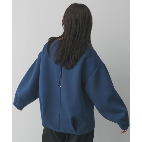 ハリのある素材を使用した、立体的なシルエットが魅力のプルオーバー。ゆったりとしたシルエットながら、上品な素材感できれいめな印象で着用できます。後ろにあしらわれたレザー紐が、バックスタイルのさりげないアクセントに。シンプルなボトムスと合わせるだけで、洗練されたスタイルが完成します。