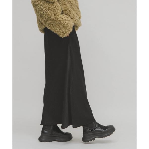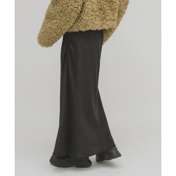 少しシワ感が入ったクラッシュサテン地を使用したスカート。程よく厚みがあり透け感を気にせず穿いていただけます。ふんわりとしたニットやボリュームのあるアウターとマッチしやすく、自然とスタイルアップも叶うアイテムです。
