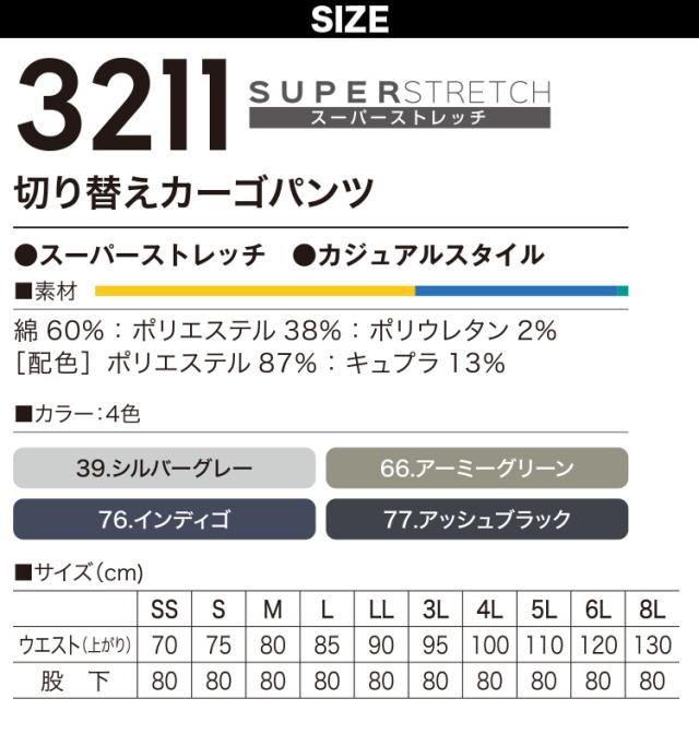 村上被服 ストレッチ切替カーゴパンツ 3211 カーゴパンツ 作業用パンツ