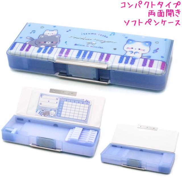 筆箱 小学生 ソフト ペンケース コンパクト 女の子 向け ニコニャン ねこ 両面開き 一年生 二年生 新入学 新学期 クラックス おしゃれ で かわいい 文房具