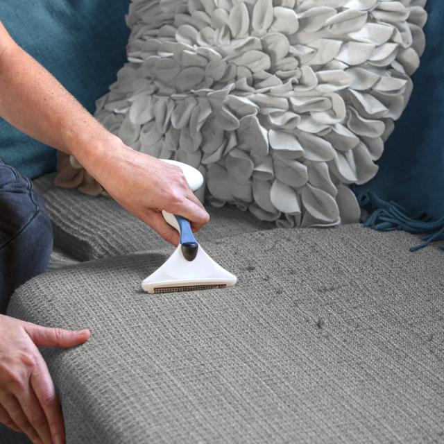 毛玉を取った後は反対側のリントブラシで衣類の仕上げもできる1本2役。毛玉取り後の仕上げ、衣類についた糸くず、ペットの毛などを優しく取り除くことができます。
