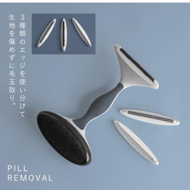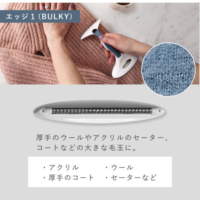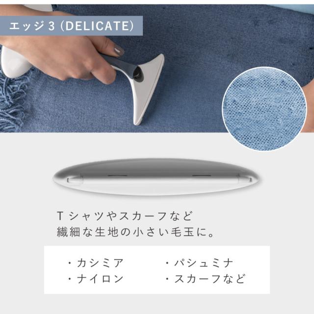 電池不要でいつでも使える、3種類のエッジで生地を傷めずに色々な種類の毛玉取りができます。手にフィットするハンドルで使いやすい設計。
