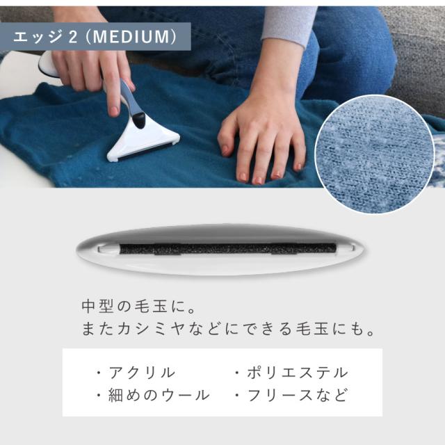 アクリル、ポリエステル、フリースなどの中型の毛玉に。またカシミヤやメリノウールなどにできる毛玉にも。