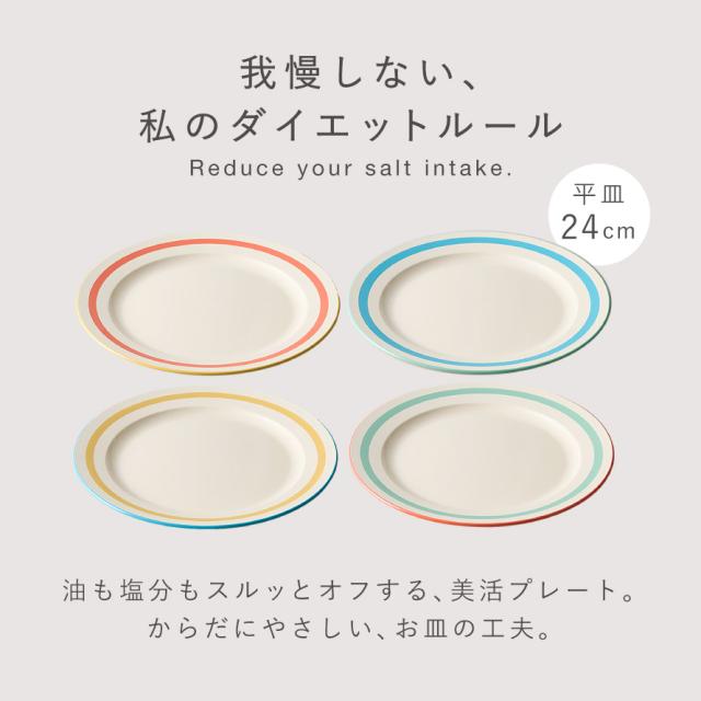 ダイエット プレート 皿 24cm 油切皿 減塩 ヘルシー BPAフリー 食器 健康 油 塩分 落とす 食洗機対応 レンジ対応 割れない レトロ おしゃれ リネア 平皿M