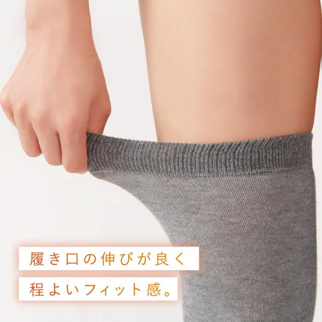 外側には、遠赤外線を放射するといわれる「備長炭練り込み繊維」を採用し、冷えやすい足元をやさしく包み込みます。