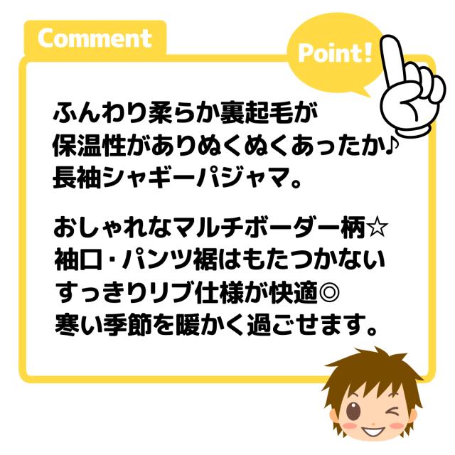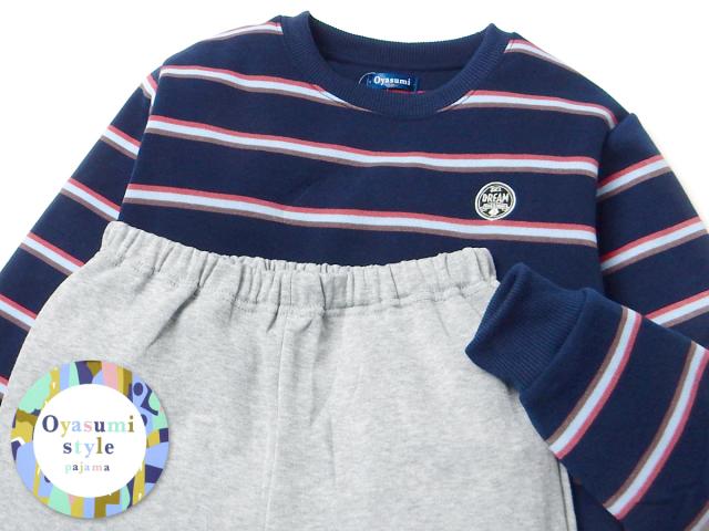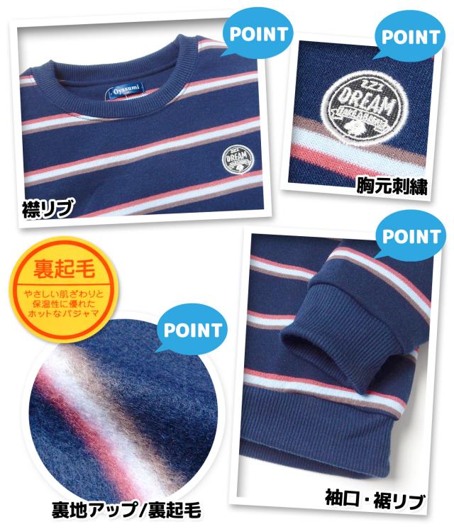 【送料無料】男児 ジュニア 裏起毛 長袖 パジャマ 上下組 あったか素材 保温性 スウェット マルチボーダー柄 バックポケット 子供服 男の子 140cm 150cm 160cm my-0112d-nv