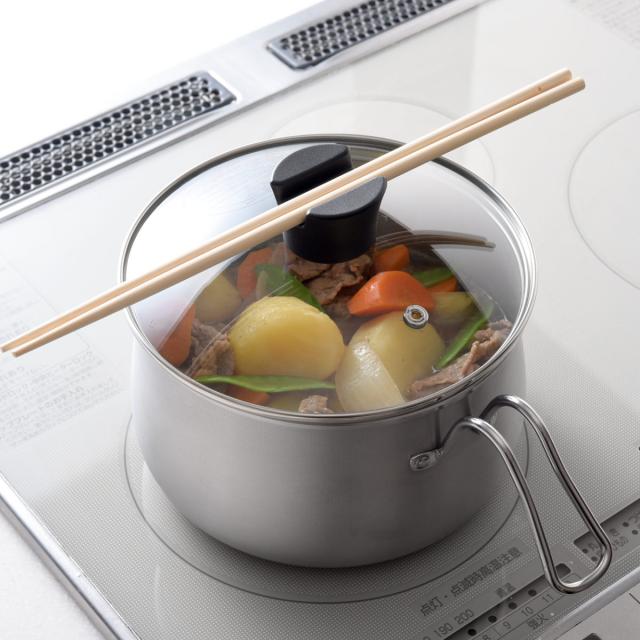 | 材質 | 【鍋】 ステンレス鋼 【蓋】 強化ガラス製器具(前面物理強化)、フェノール樹脂、ステンレス鋼 |