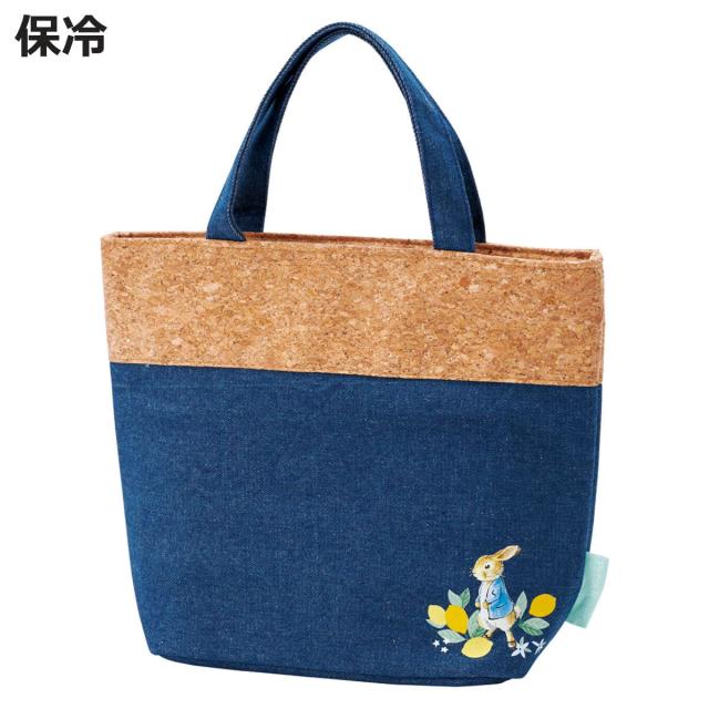 ランチバッグ コルク×デニムランチバックM ピーターラビット シトロン ( お弁当袋 ミニバッグ 手提げ サブバック 鞄 保温 保冷 バッグ トート デニム コルク かばん カバン お弁当用 お弁当入れ 保冷剤 保冷ランチバッグ )