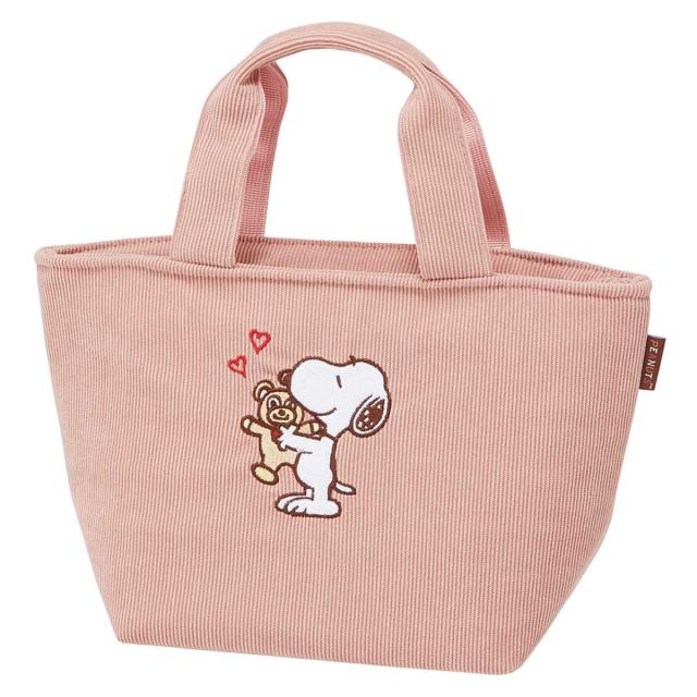 ランチバッグ コーデュロイ生地ランチバッグ SN and BEAR ( スヌーピー お弁当袋 ミニバッグ 手提げ サブバック 鞄 保温 保冷 バッグ トート ボア もこもこ かばん カバン お弁当用 お弁当入れ 保冷剤 保冷ランチバッグ )