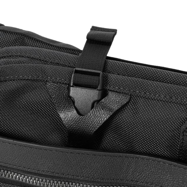 | ビジネスシーンでの使用や冠婚葬祭などで長距離移動を伴う際などにキャリーオンをして使用できるガーメントケース。 スーツをハンガーにつるした状態で収納できるのはもちろん、内外にポケットを多数設けシャツやネクタイなどの付属アイテムも仕分けしながら収納することが可能。 FUSIONコレクションならではの端正でシックなルックスも魅力のアイテムです。 -優れた収納性能- ・センターに設けたハンガーベルトにハンガーを引っ掛け、スーツをハンガーにかけた状態で収納することが可能。 ・内装には複数ポケットを搭載。4つのポケットは立体感があり、シャツなどの衣類を収納しやすい構造に。また、フロント部分のみメッシュ素材を用いることで、中に何を収納したかが一目で認識できる仕様。 吊りポケットはネクタイなどを収納するのに最適。 ・本体は2つ折りの状態からさらにコンパクトに持ち運びができるよう中央で折り畳み、バックルで留めることが可能。 キャリーバーに通すことが出来るベルトを備え、キャリーケースと併せ持ちしていただけます。 -上品さと機能性を兼ねそろえた素材の組み合わせ- ・素材にはレザーとナイロンを使用。あえてレッドラインを使用せず、ワントーンに纏めることで、異素材のコンビネーションが際立つ仕上がりに。 ・使用している型押しレザーには防水加工がほどこされ、ある程度の天候に対応。 ・タイヤの芯材にも用いられる耐久性、耐摩耗性に優れた1680でニールナイロンを使用。 【FUSION COLLECITON】 BRIEFINGを象徴するカラーであるブラック×レッドラインをあえて使用せず、シックな顔立ちに仕上げたアイテムを展開する「FUSION COLLECITION」。 ウォータープルーフ加工を施したレザーと高強度ナイロンを組み合わせたデザインのコレクションから、今までのBRIEFINGとは異なる新たな顔をお届けしていきます。 |