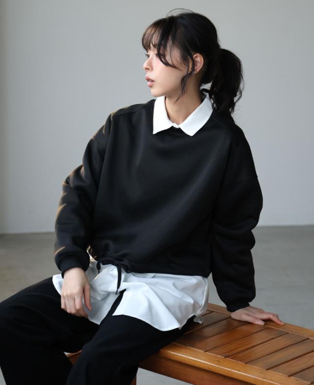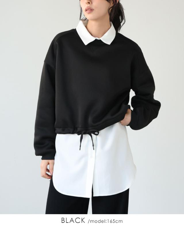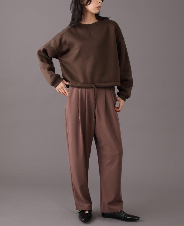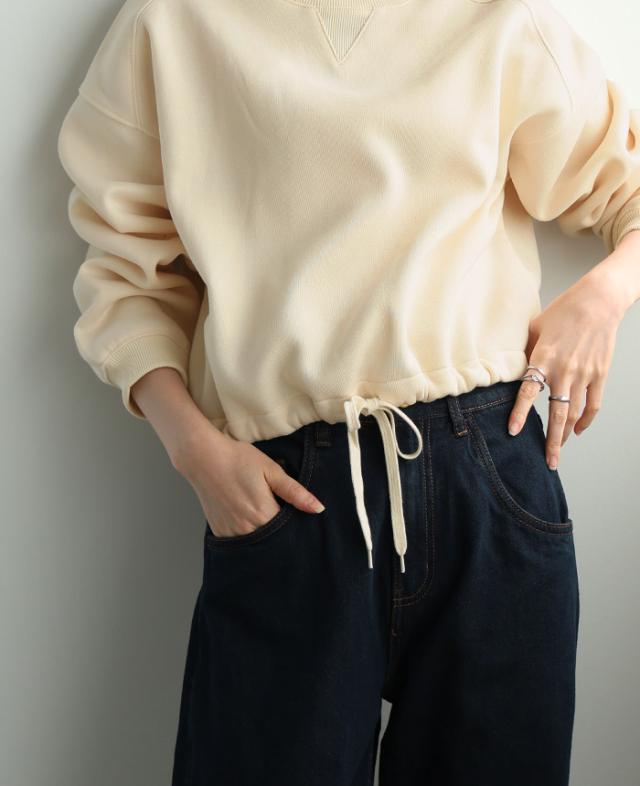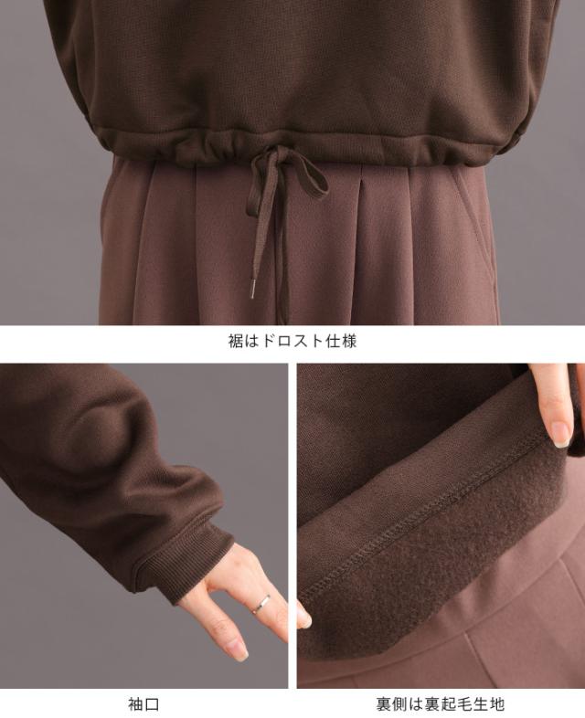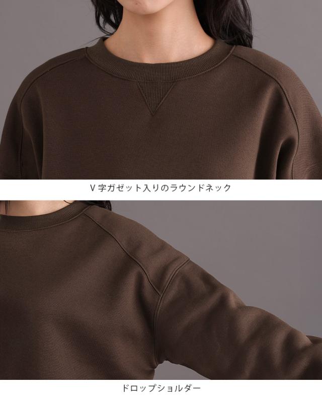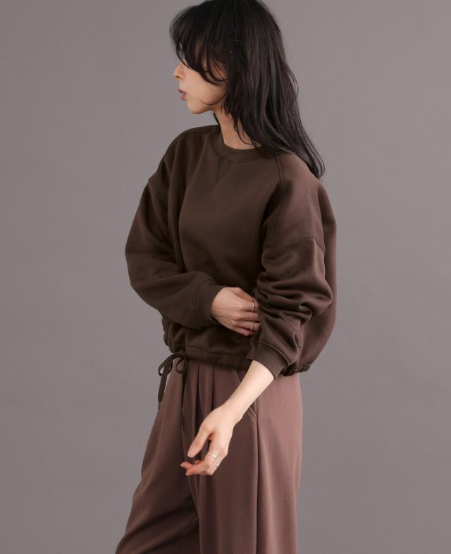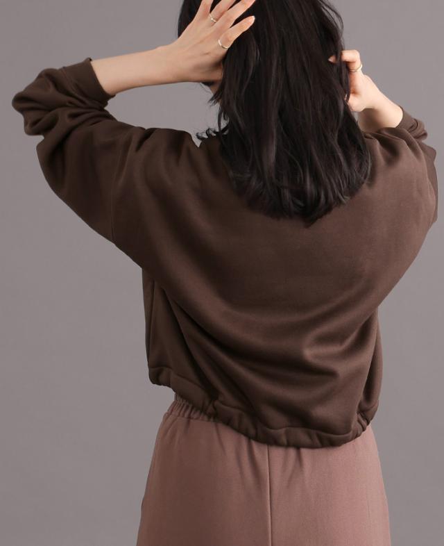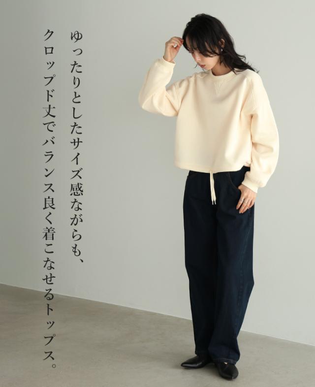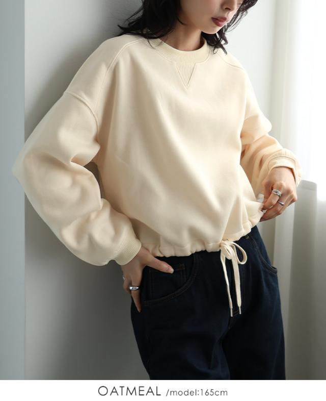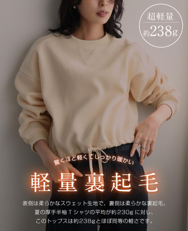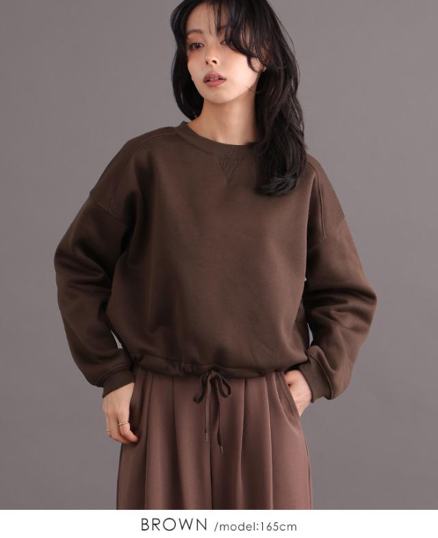 [新作限定P10%×送料無料]裾ドロスト裏起毛ショートトップス レディース 防寒 ショート丈 トレーナー プルオーバー ドロスト 体型カバー 秋冬 冬新作【メール便不可】