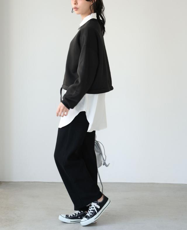 ■Attention ※ご覧になるモニターや環境により実際の商品と色味が異なる場合がございます。予めご了承ください。 ※実寸サイズは平置きメジャー採寸のため若干の誤差が生じる場合がございます。 ※お取り扱い・お洗濯につきましては、付属の商品タグをご使用前に必ずご確認下さい。 ※濃色の商品は色落ち・移染する可能性がございますので、お取り扱いにはご注意下さい。 ※繊維製品のため、同じ商品であっても生産時期やカラーによって伸縮率・生地感・色味が多少異なる場合がございます。特にニット製品に関してはプレス・洗い加工等で5cm前後の誤差が生じる場合がございます。 これらは品質上問題はございません。予めご了承下さい。 ■Staff comment AI/身長:154cm(普段のサイズ:M-L) 体型:骨格ストレート 全体的に厚みのある、産後体型。 トップスはMサイズを選ぶ。 ウエストと腰回りが大きく、ボトムはLサイズを選ぶこともあります。 【着丈】脚の付け根上ぐらい。 【袖丈】伸ばすと指の付け根で、袖口は手の甲で止まる。 【一言コメント】 ゆったりしているので、中にロンTやシャツを合わせやすそうです。 AYA/身長:158cm(普段のサイズ:M) 体型:骨格ウェーブ 上半身筋肉質の標準体型。肩幅は広くバストは平均。 ウエストは細くヒップが大きいので、 ヒップに合わせてボトムは選びます。 【着丈】腰骨ぐらい。 【袖丈】伸ばすと親指の付け根で、袖口は手の甲で止まる。 【一言コメント】 ふわっとした裏起毛で、快適な着心地です。 RISA/身長:165cm(普段のサイズ:L-LL) 体型:骨格ナチュラル 体に厚みがあるやや痩せ型。 バスト・ウエスト・ヒップは標準ですが、 肩幅が広くて腕が長め、ふくらはぎは筋肉質。 身長が高いため普段Lサイズを選びます。 【着丈】おへそ下4cm。 【袖丈】伸ばすと手の甲半分で、袖口は手の甲で止まる。 【一言コメント】 伸縮性があるので動きやすく、気軽に着れそうです。 |