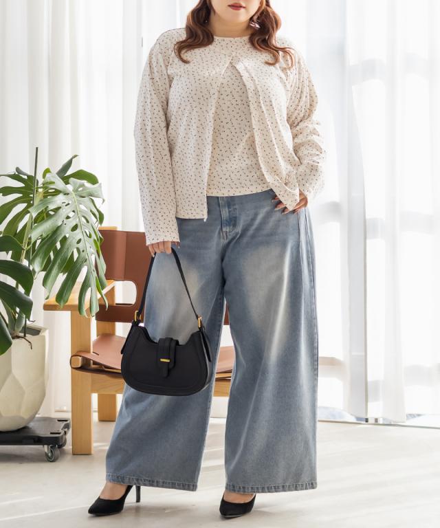 大きいサイズ/レディース/3L/4L/5L/小花柄トップス&カーディガンセット
