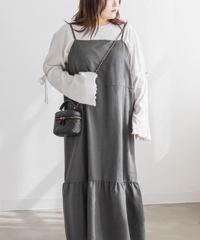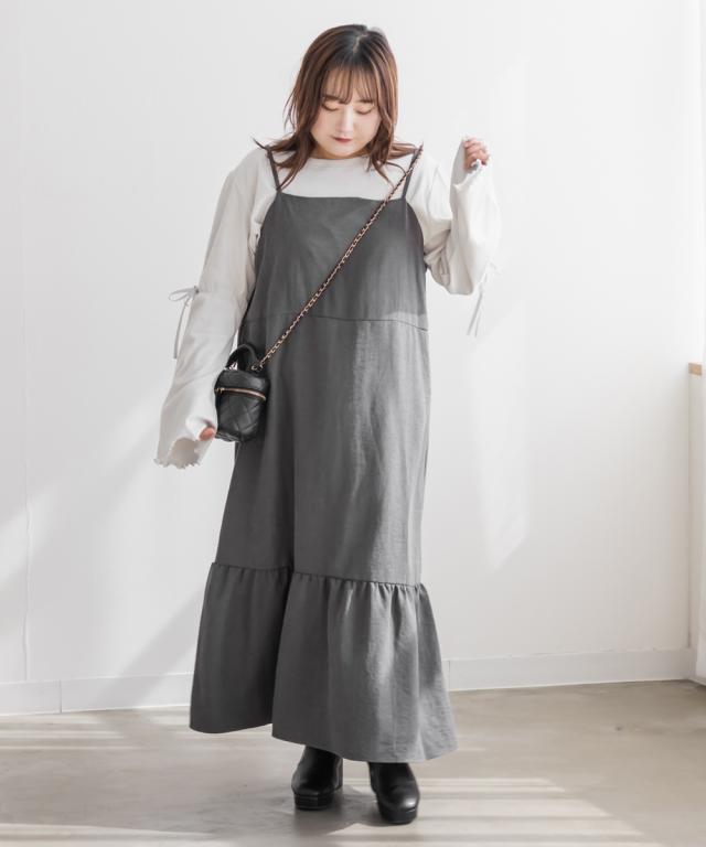 大きいサイズ/レディース/3L/4L/5L/裾フレアスエードキャミワンピース