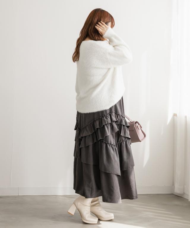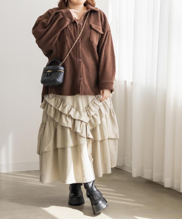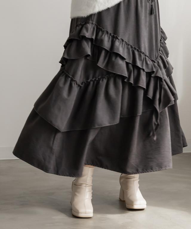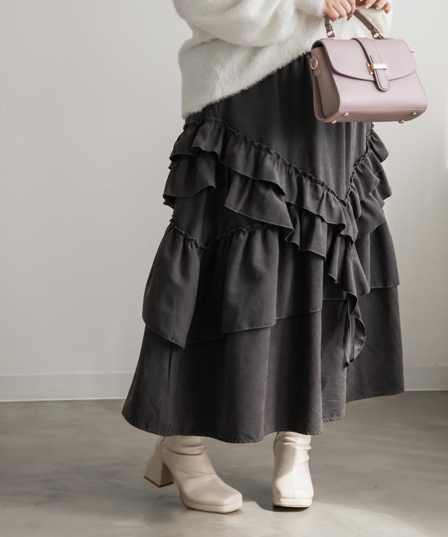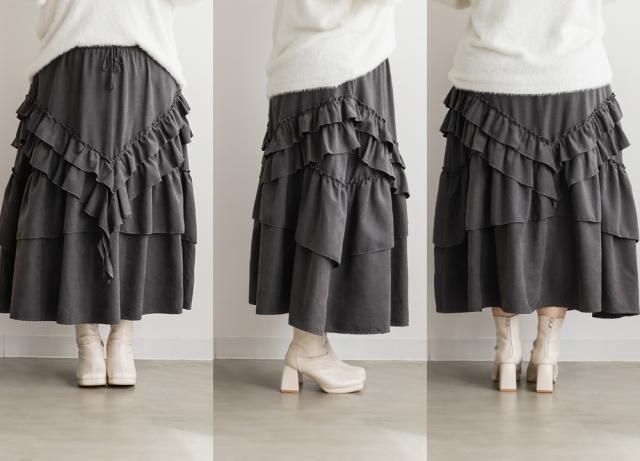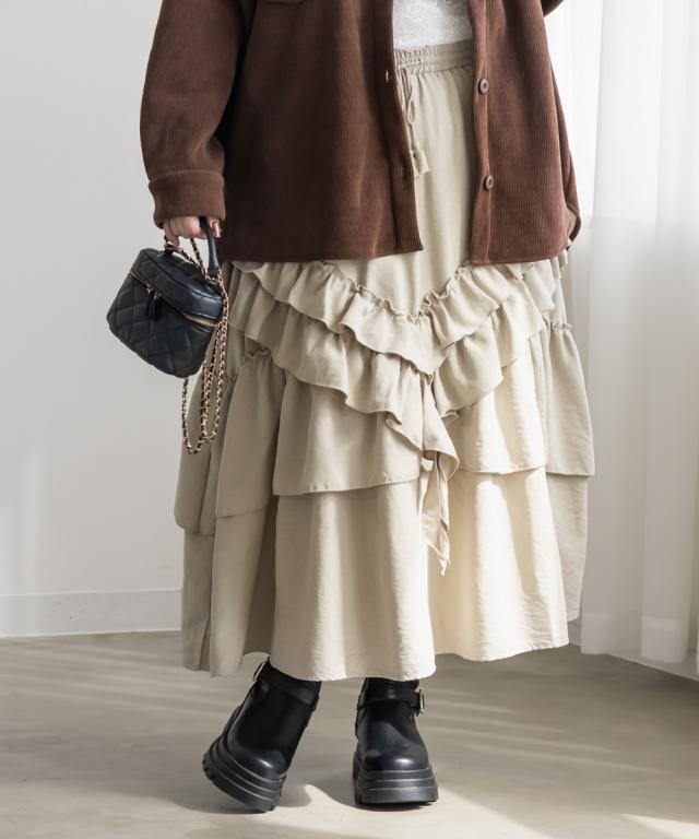 | 3Lサイズを着用しました。ウエストは総ゴム仕様でラクに履けてちょうどよかったです◎紐でも調節できるのも嬉しい。ラッフルデザインが歩くたびにひらっと揺れて、女性らしさをしっかり演出してくれます。ロング丈なので気になる足元もカバーしつつふんわりシルエットでボディラインもカバー♪シンプルなトップスを合わせるだけで華やかになるので、普段使いはもちろん、ちょっとしたお出かけにもぴったりでした! |
