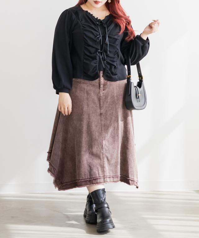 大きいサイズ/レディース/3L/4L/フリンジデザインイレヘムミディスカート